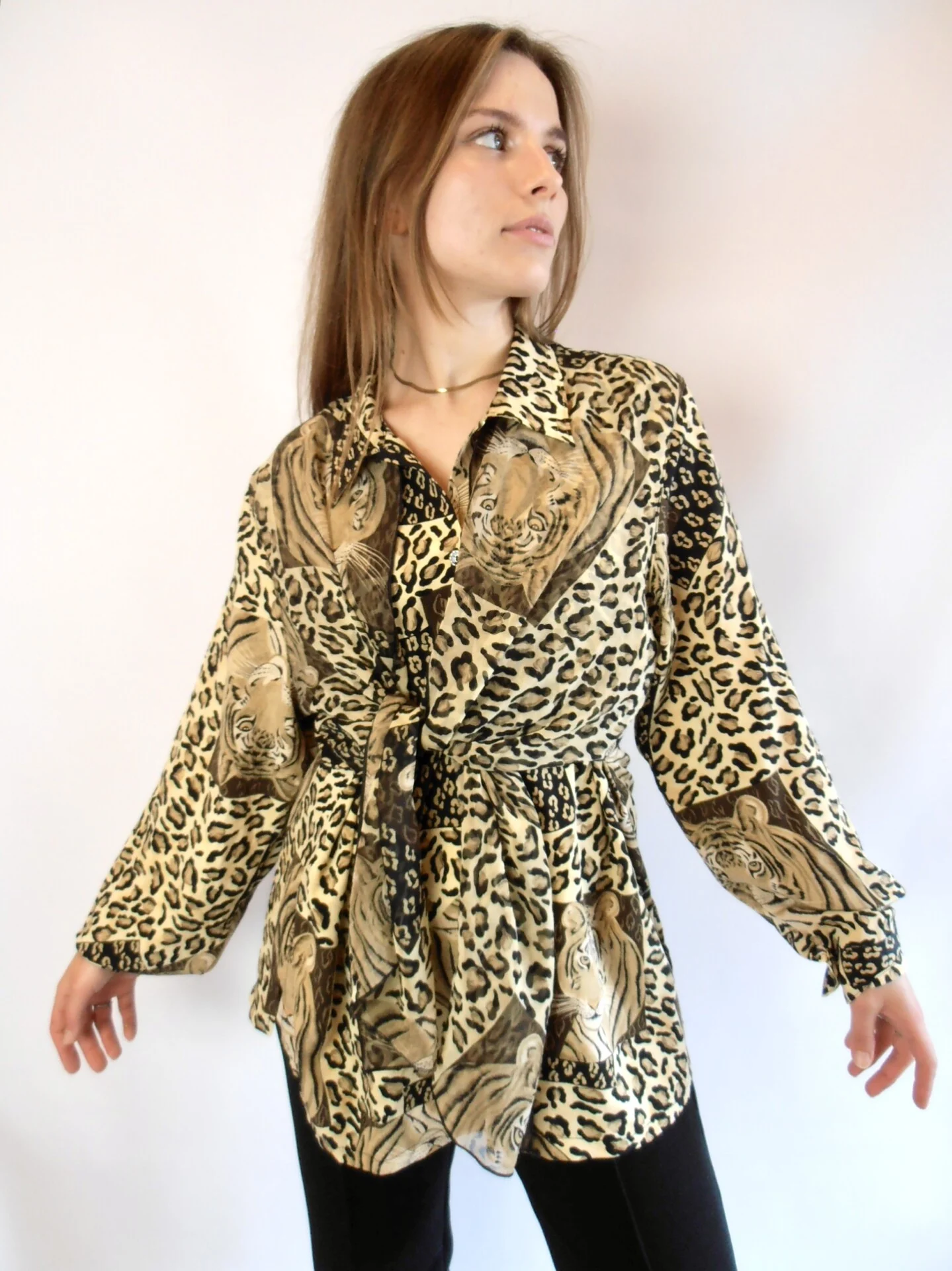 Handpicked vintage tiger-print blouse, can be tied in the front.
